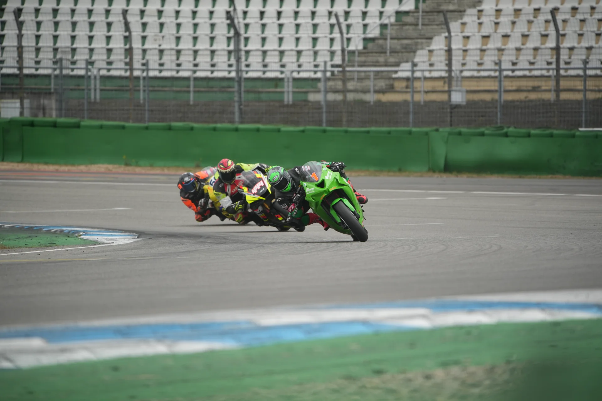 Dass der Frühling nicht immer mitspielt, wurde schon im Zeittraining klar: leichter Sprühregen, wechselnder Grip, ständig neue Bedingungen – aber für alle gleich. Die schnellste Runde ging an Moto67 by JOJ Racing (#167) mit Sascha Gallert sowie den Pro-Superstock-1000-Piloten Maurice Mouton und Freddie Heinrich.